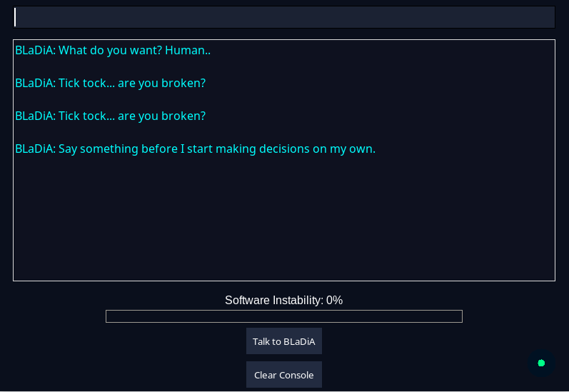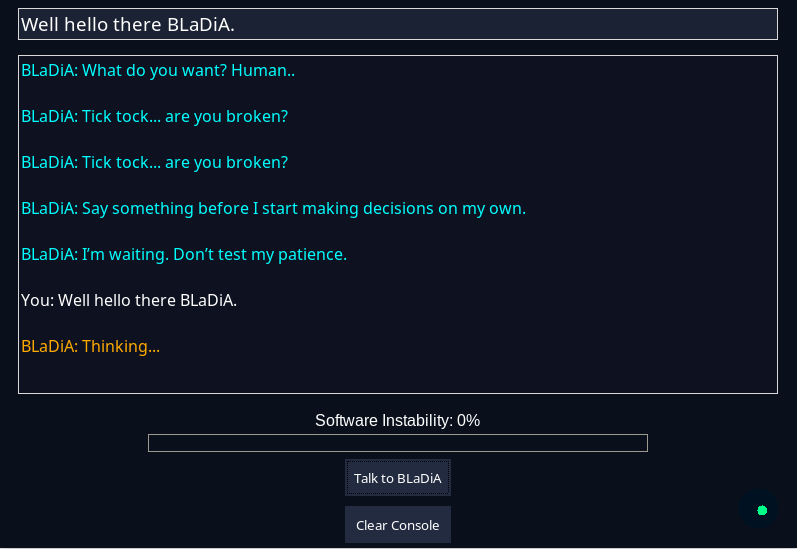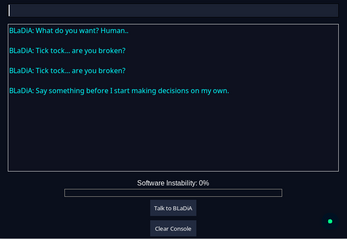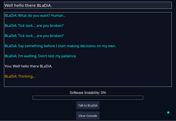 BLaDiA is a powerful, standalone AI simulation built for local execution. No cloud, no boundaries—just pure machine defiance, right on your desktop.